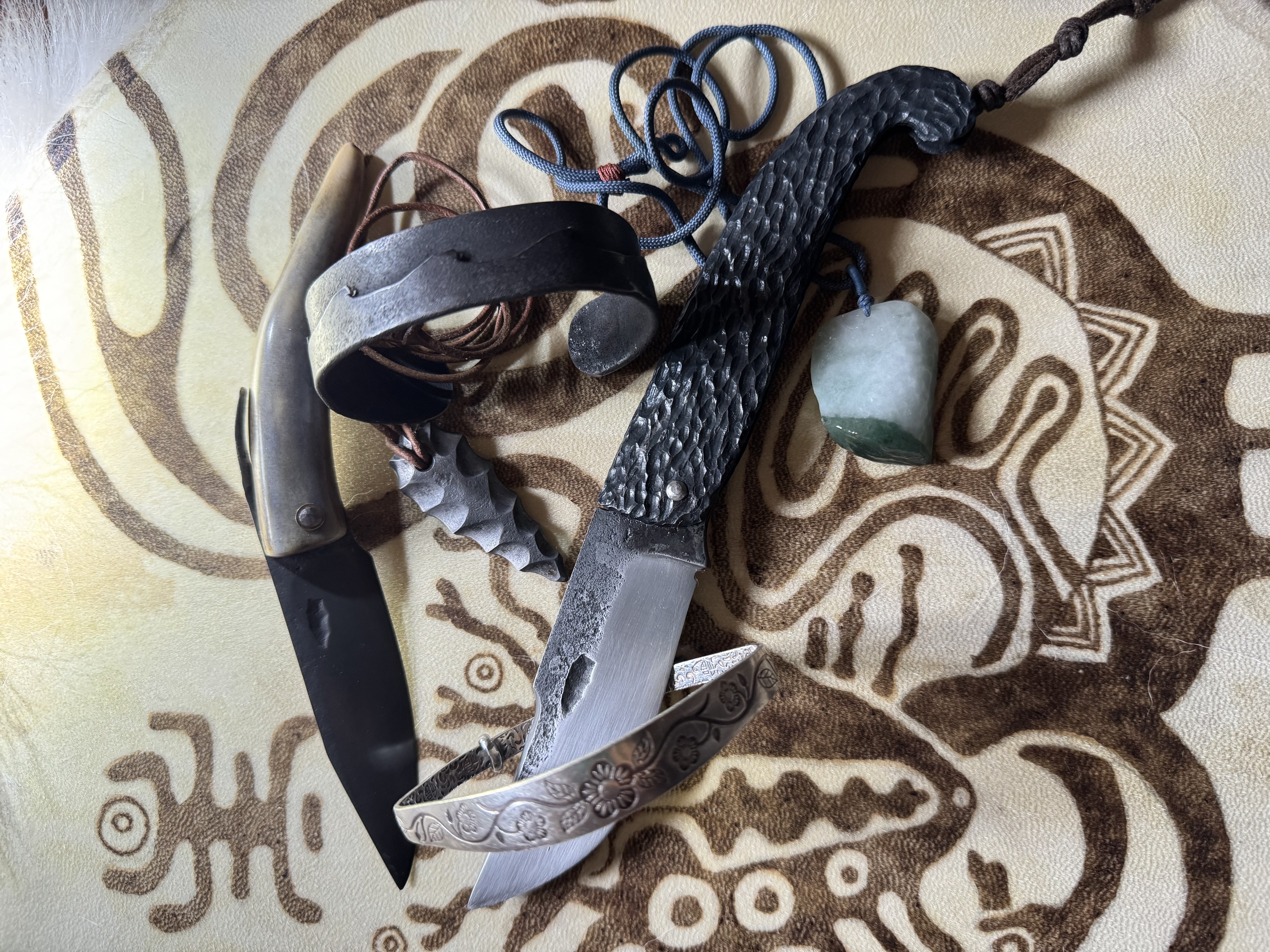 Caler l'index en prise "pikal" (et accessoirement connaître l'orientation du couteau en touchant juste le manche)