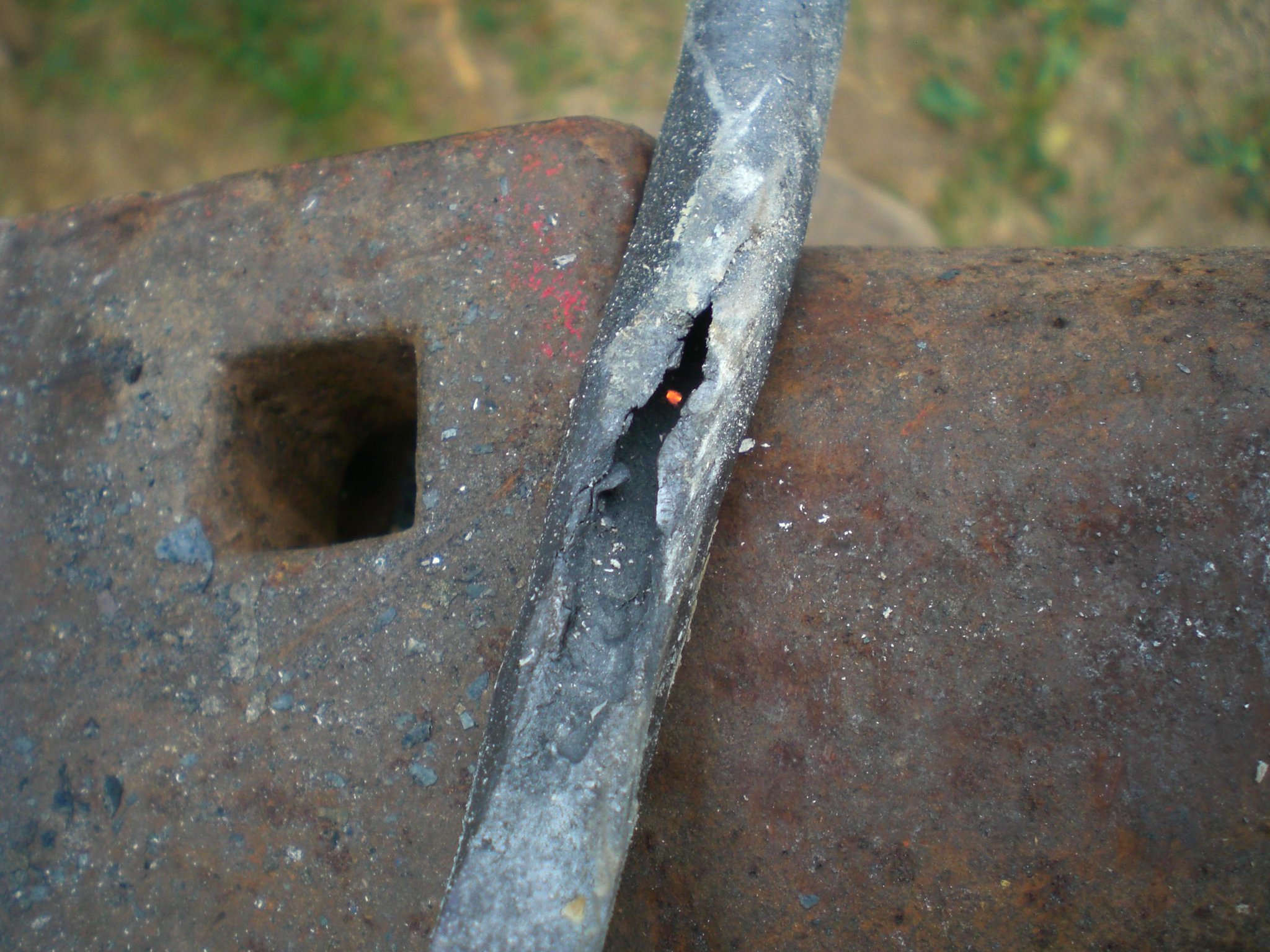 Au départ j'ai pris une vieille lime, qui est décédée dans l'opération : à trop tourner la manivelle de la ventilation de la forge le bout de la lime à "fondu" :truffe: