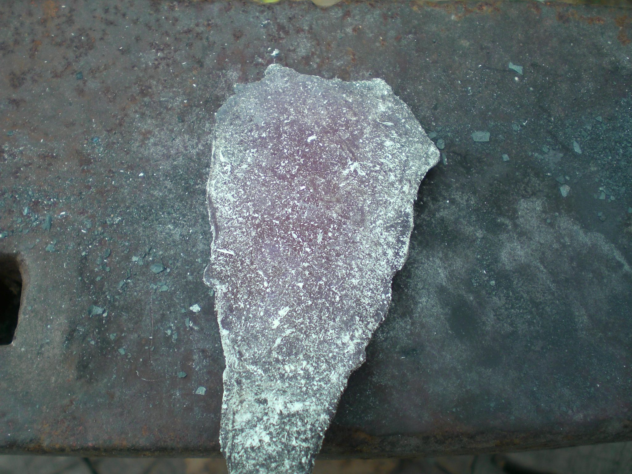 Du coup, je me suis fait la main sur une barre section carré d'acier laminé quelconque, en suivant les quelques videos de fabrication de pointe de flèche sur YT.