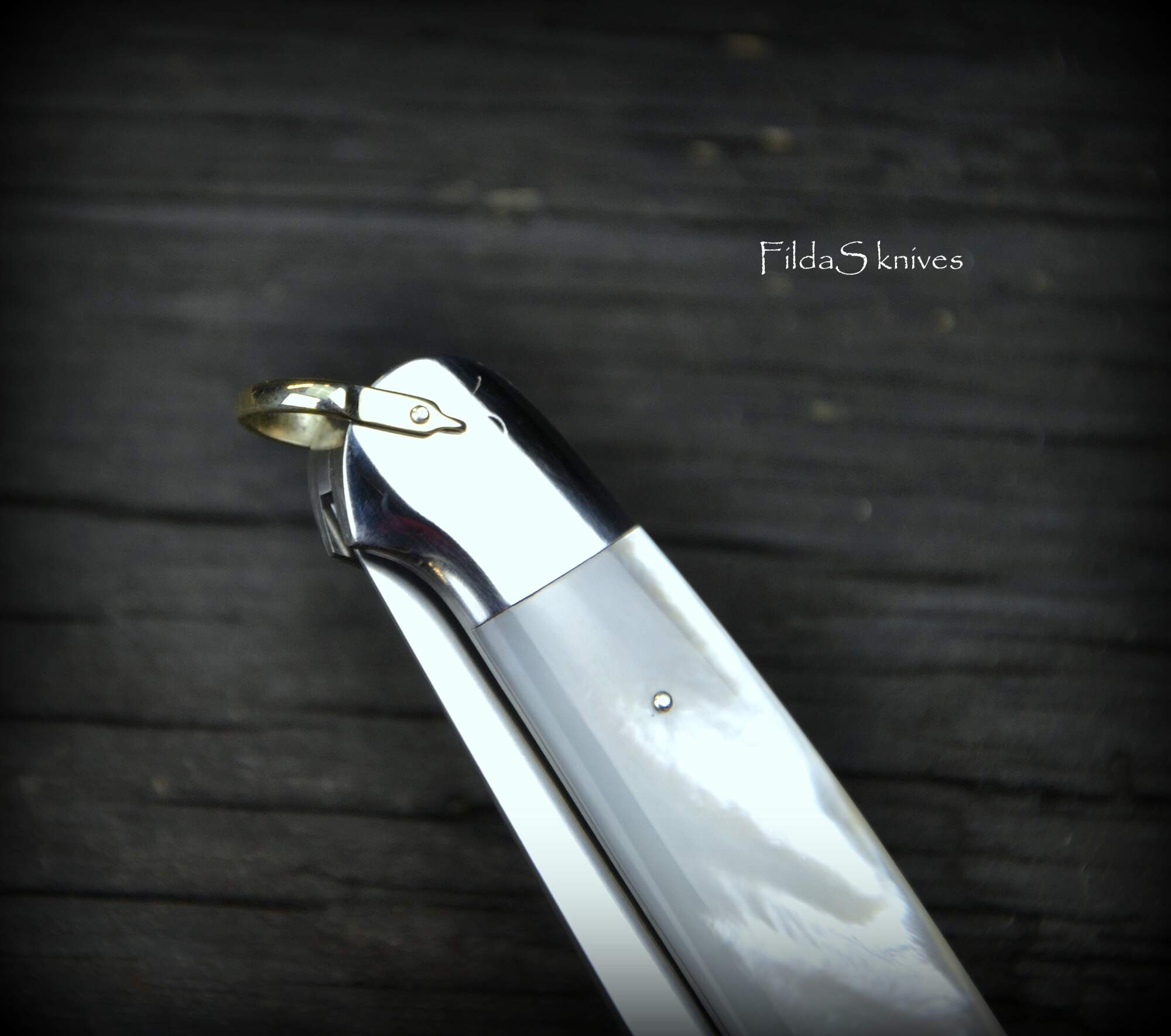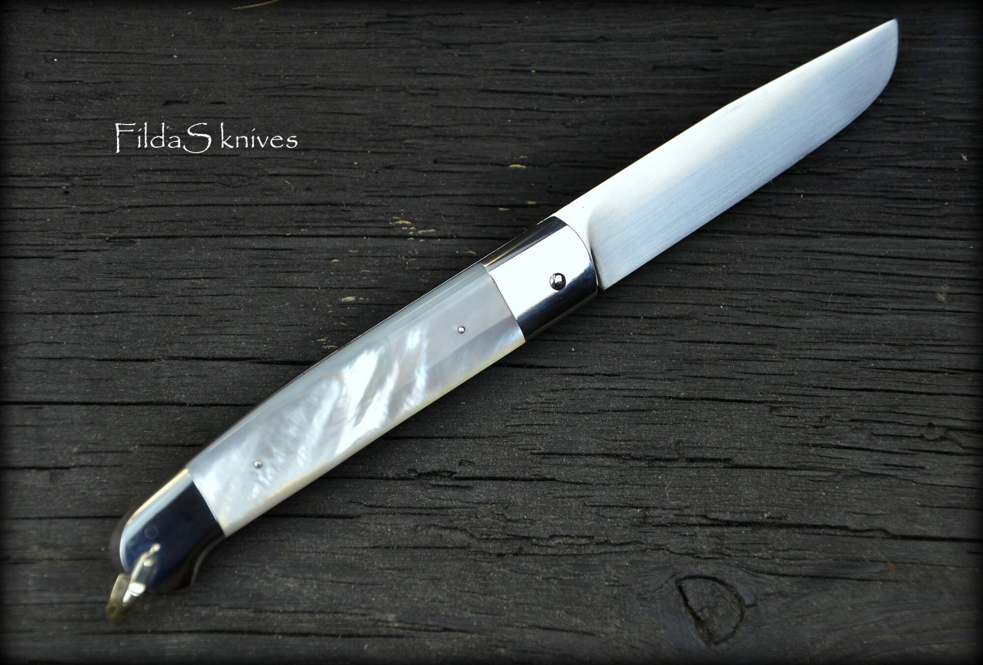 I have new laquiol(notch lock) knife. Blade is made from Sandvik 14c28n, Handle consist of titanium gr.5, newsilver, raindeer antlers, silver pins, and Ak5mo. Thank you for watching. Filip